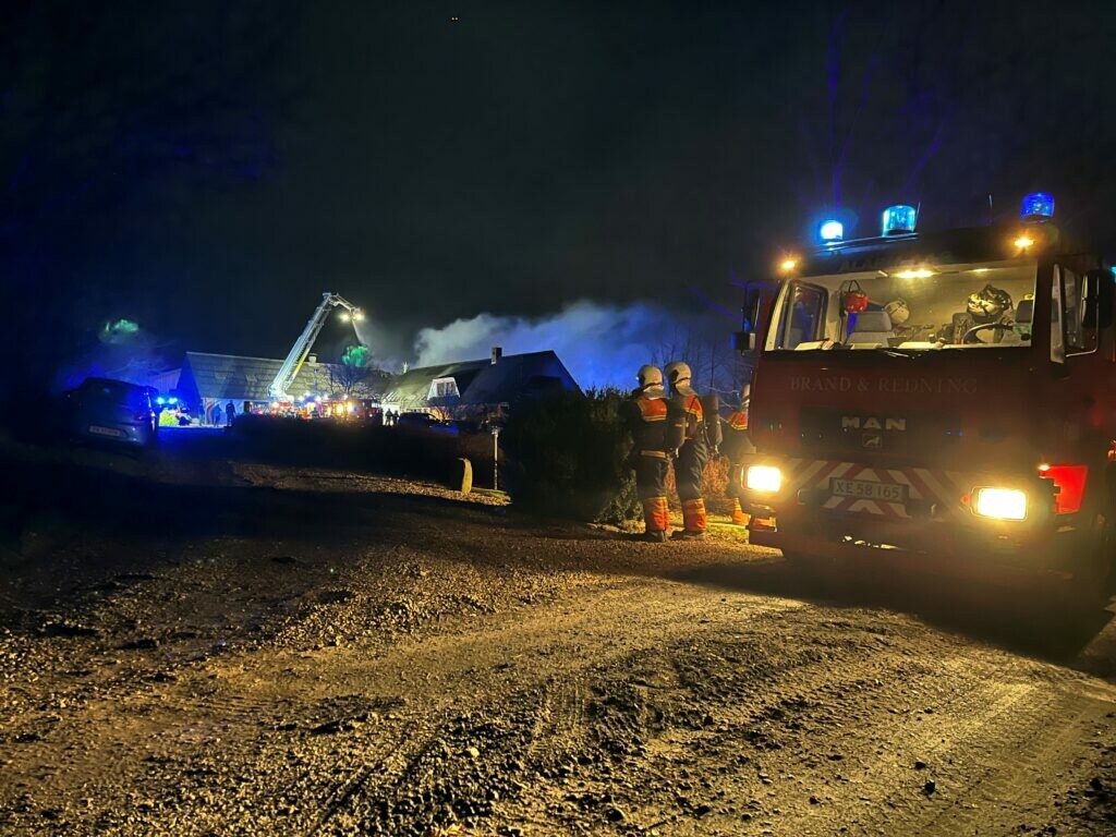 Brand og Redning rykkede ud til gården og arbejdede på at slukke branden indtil klokken 04:00.