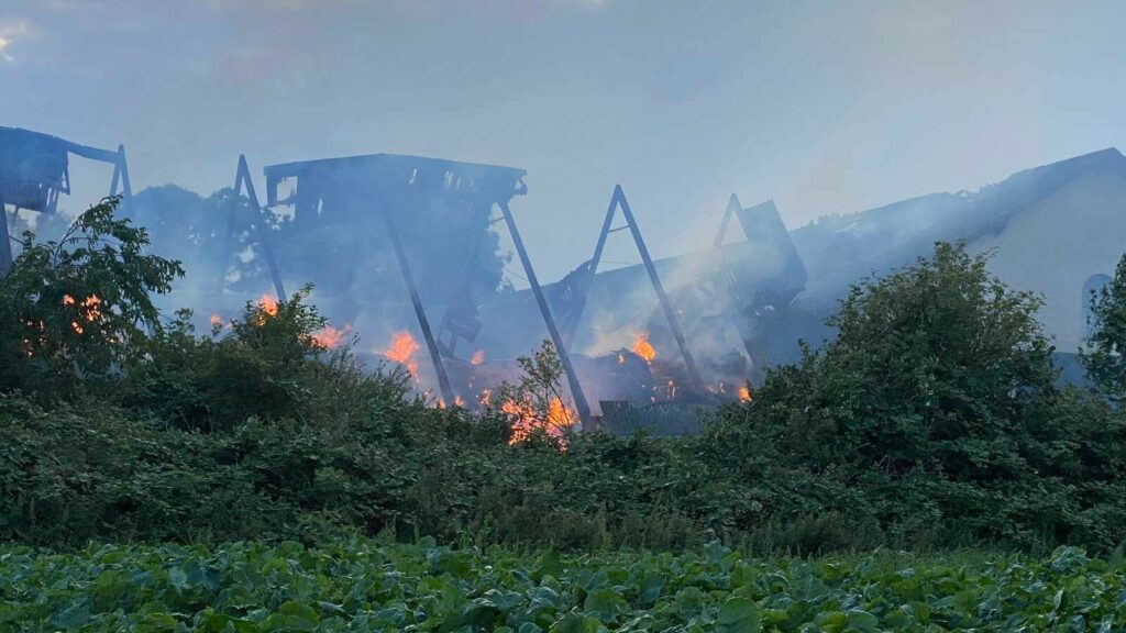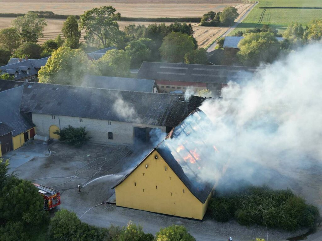 Brandvæsnet er tirsdag aftentalstærkt til stede på Højstrupvej i Rødvig Stevns, hvor en gårdlænge lige nu står opslugt af flammer.