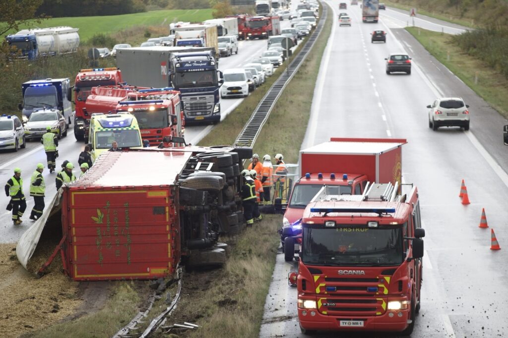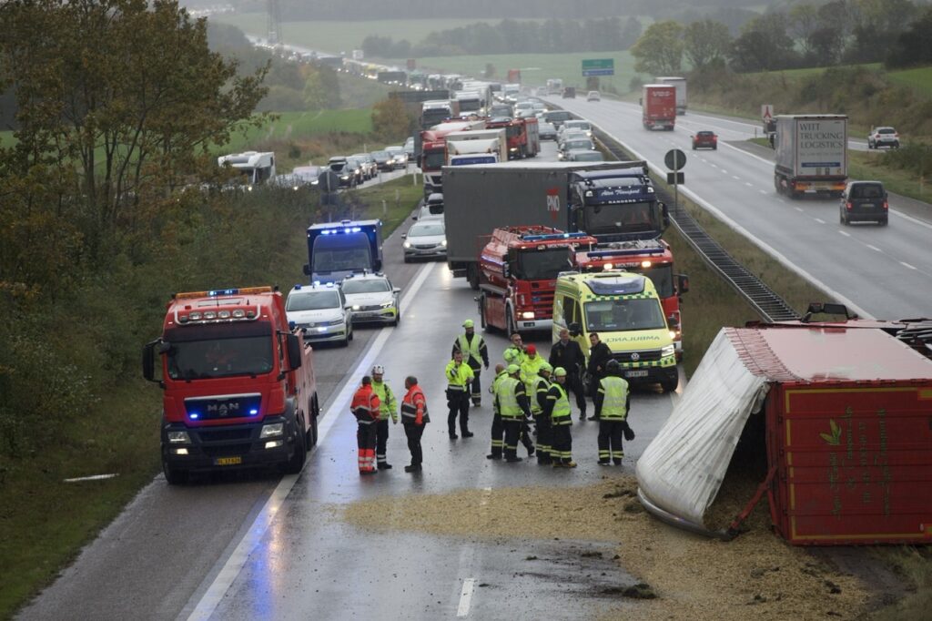 Væltet lastbil spærrer torsdag eftermiddag sønderjyske motorvej ved Christiansfeld.