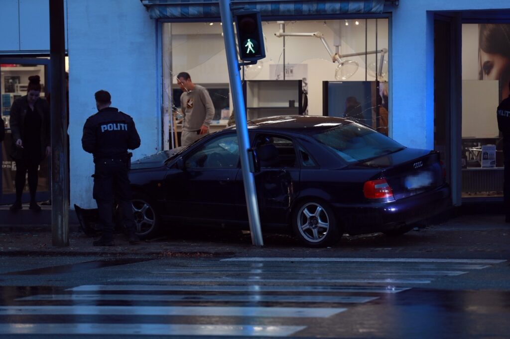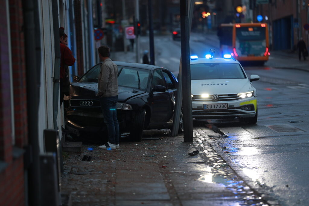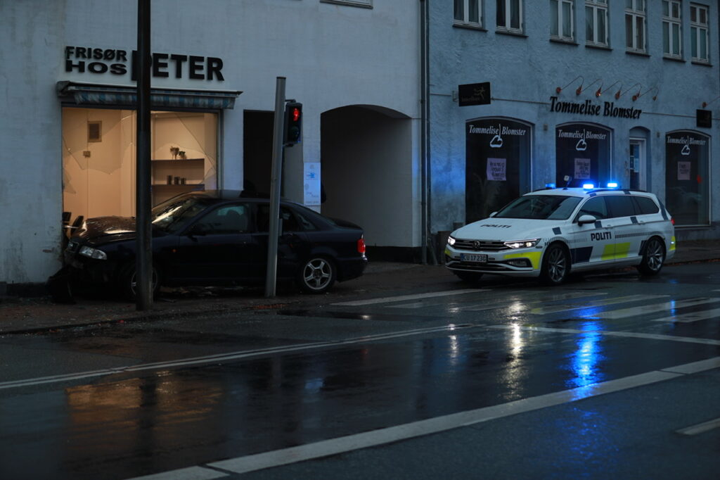 Torsdag aften gik en biljagt galt, da den flygtende Audi kørte op over fortovet og ind i butiksfacade på Jernbanegade i Slagelse.
