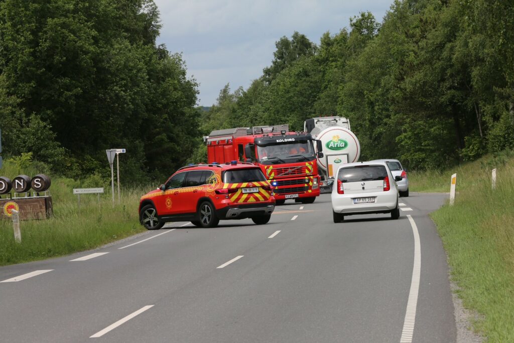 Søndag er der sket et voldsomt færdselsuheld på Dons Byvej i Almind.