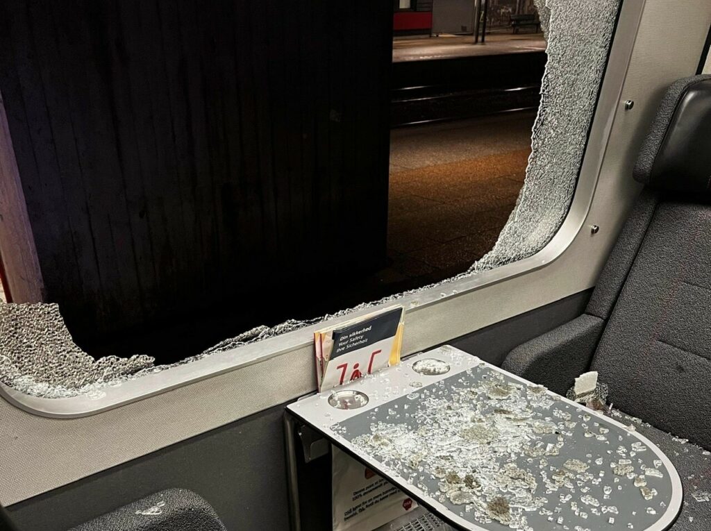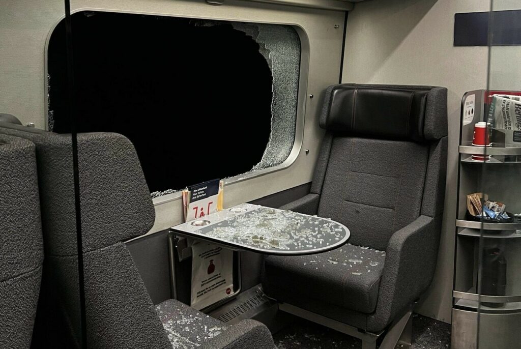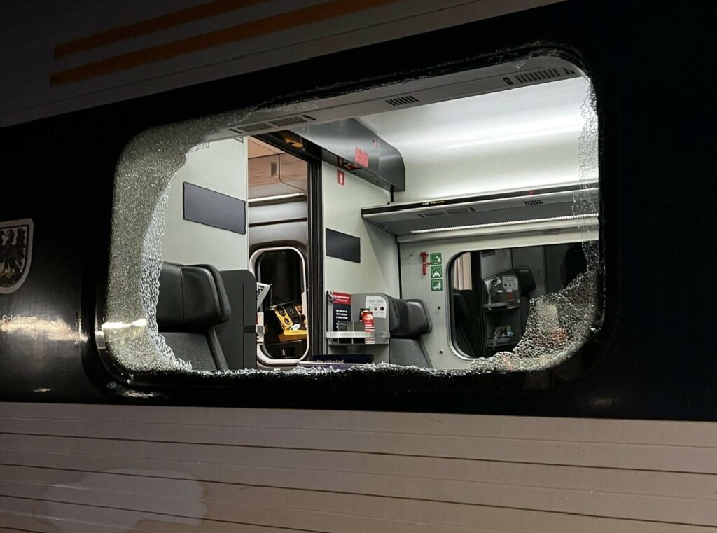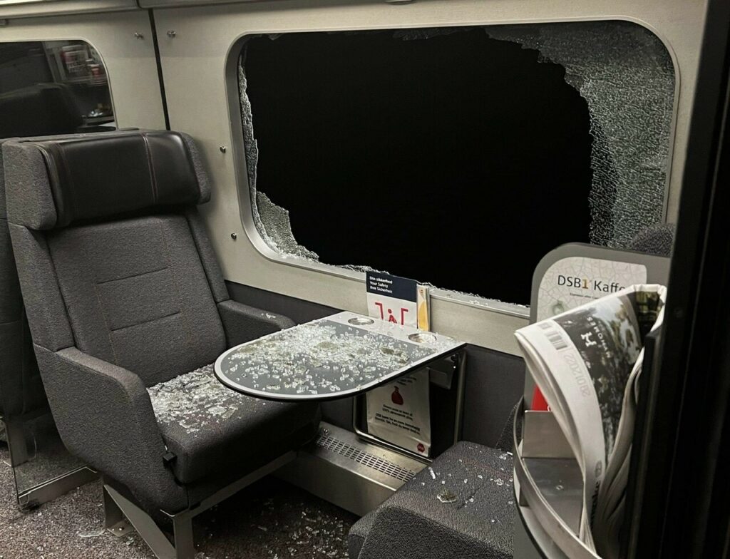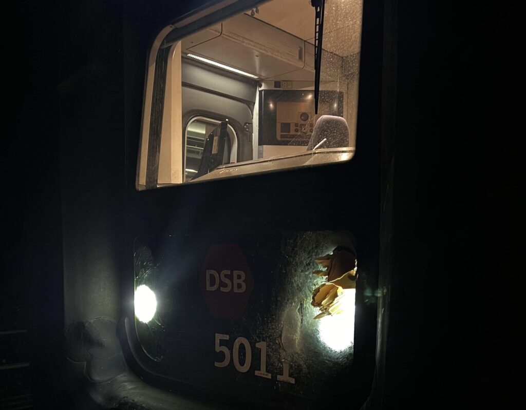 Det gav et stort brag, da et væltende træ søndag morgen væltede ind i et tog ved Skanderborg station og knuste en rude til en kupe.