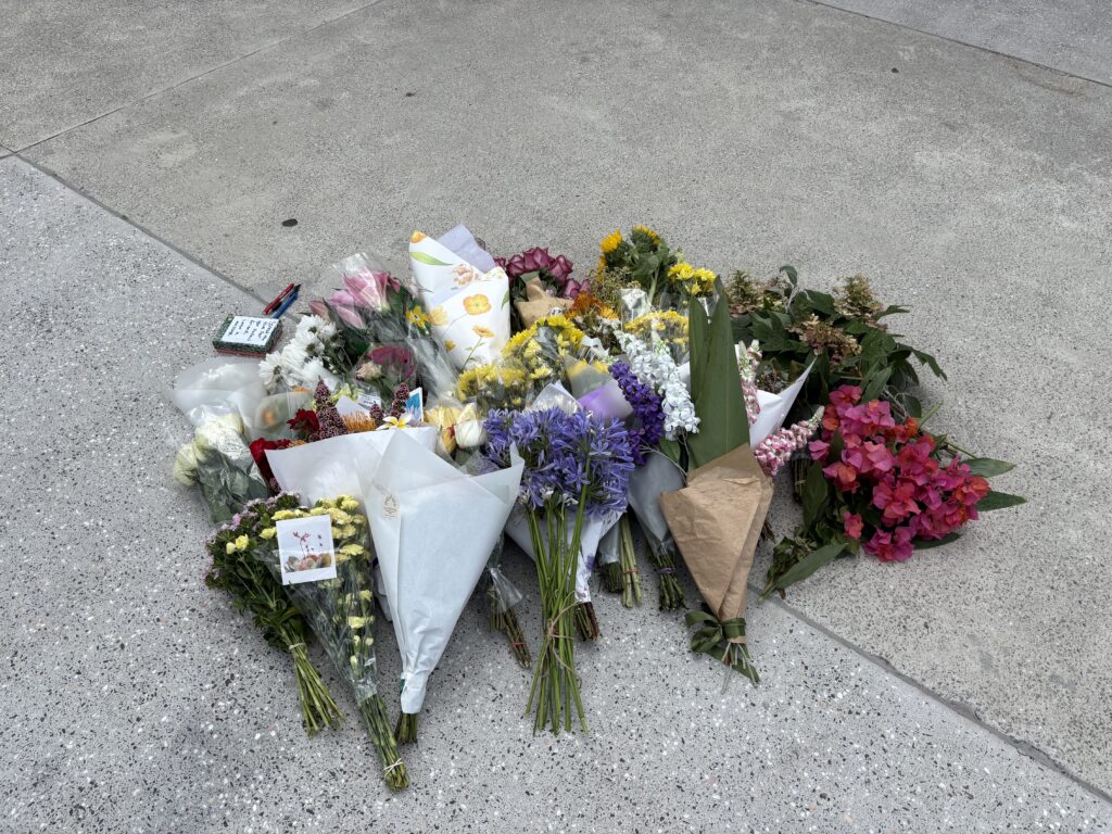 Her er der blevet lagt blomster ud til ære for de afdøde.