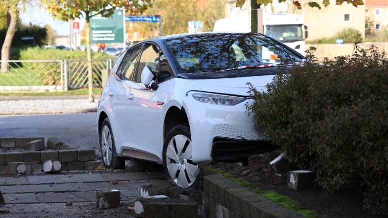 Personbil påkørt bagfra: Smadrer ind i stenbed