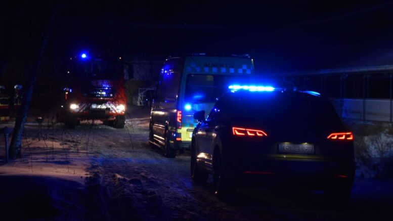 Boligområde oplyst af blå blink: Massivt beredskab fremme