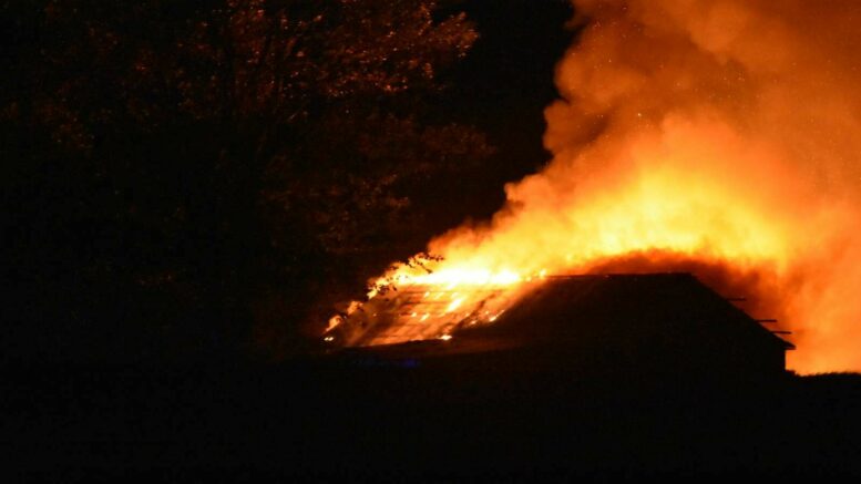 Mejetærsker udbrændt på Fyn – voldsomme flammer