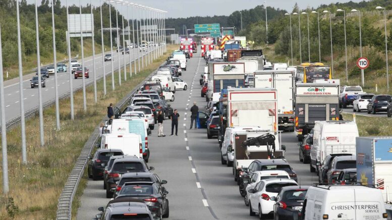 Folk går rundt på motorvejen | Uheld lukker stedet