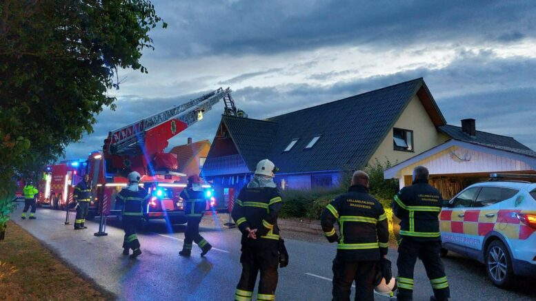 Lyn slog ned i hus – brandvæsenet talstærkt til stede