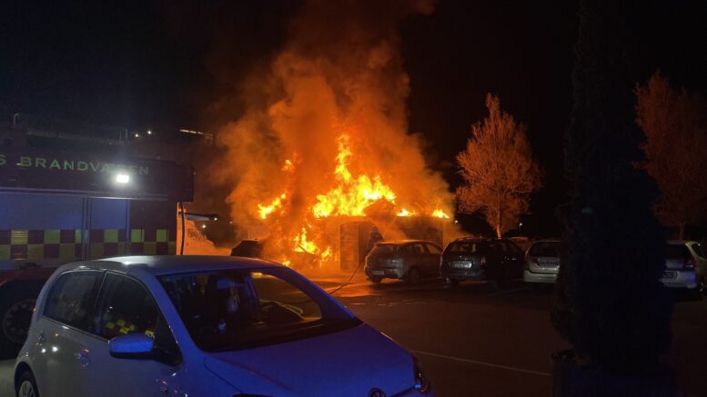 Kraftig bilbrand i Aarhus V – brandvæsenet kæmper for at forhindre spredning