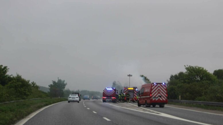 Brandvæsenet til stede på motorvej – brand i lastbil