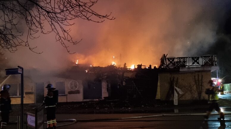 Kraftig brand hærger bygning i Dorf