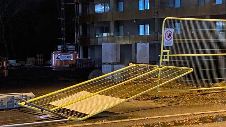 Hegn væltet ved byggeplads