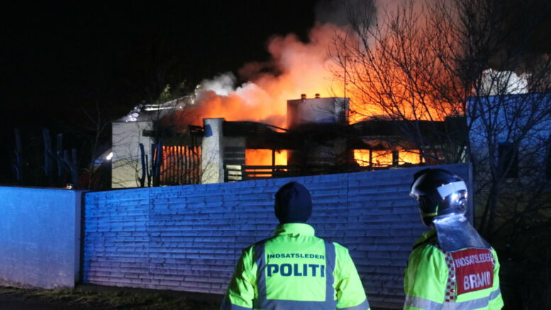 Villa i flammer i Ikast – redningsmandskab kæmper med slukningen