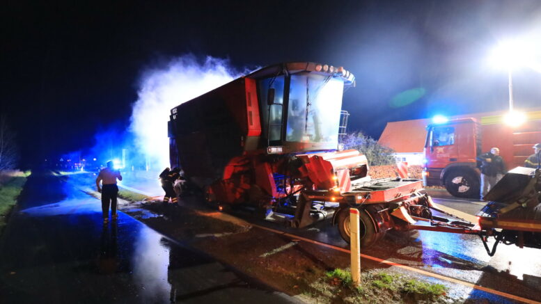 Ild i lastbil med mejetærskere i Ringsted