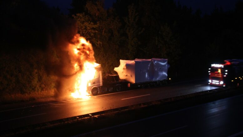 Lastbil i flammer på Vestmotorvejen ved Slagelse
