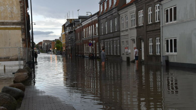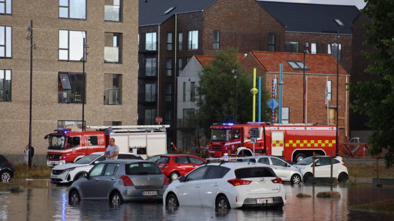 Melding om færdselsuheld i vandmasserne i Fredericia | flere veje oversvømmet