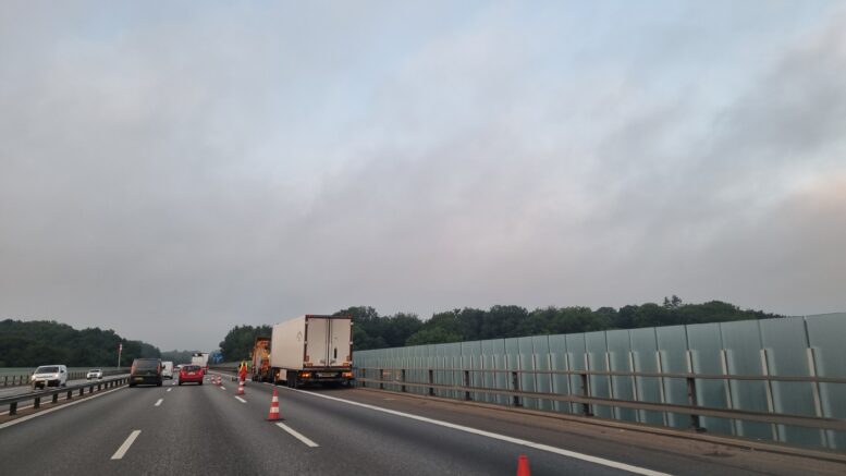 Havareret lastbil skaber kø på Vejlefjordbroen