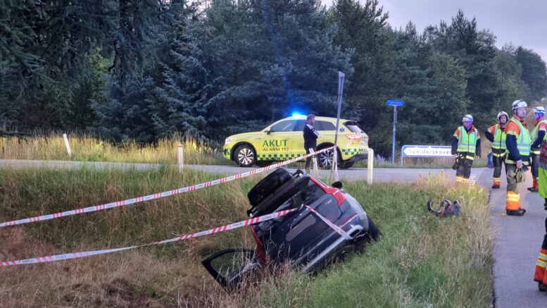 Bil stormede over for rødt og endte i uheld – flere personer stukket af fra stedet