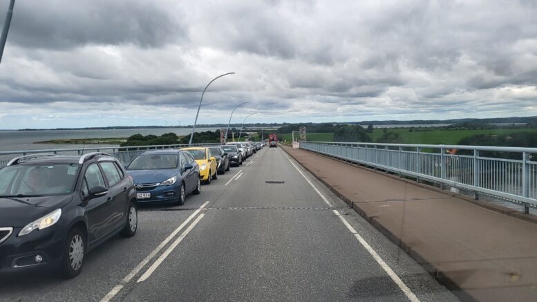 Tabt gods skaber voldsom kø på Vejlefjordbroen