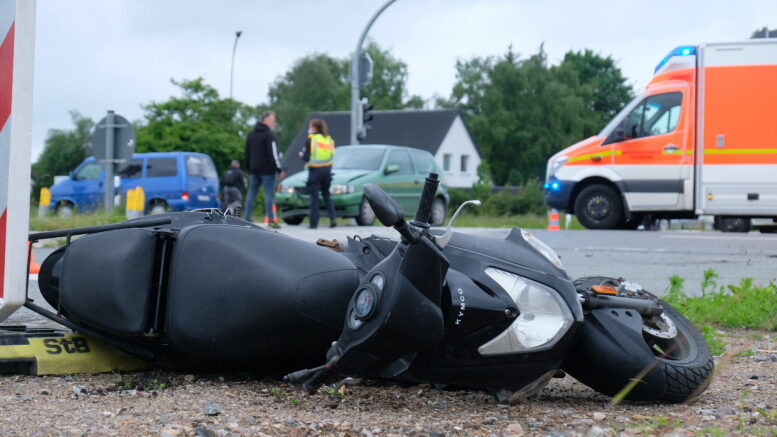 Knallertfører i livsfare – slynget hen på modsatte side af vejen
