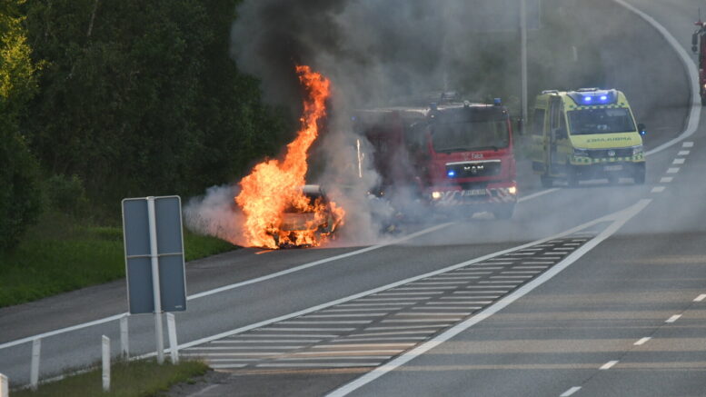 Bil i flammer på Svendborgmotorvejen – afkørsel spærret