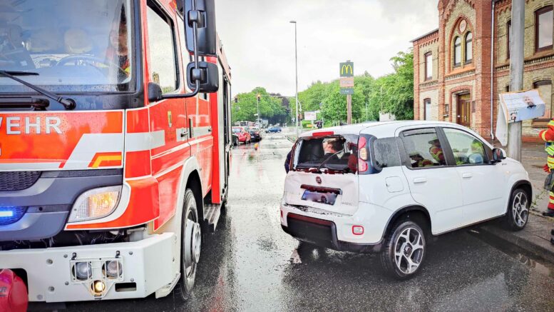 FLUGTBILIST | Bil ramt af lastbil i Flensborg – redning talstærkt til stede