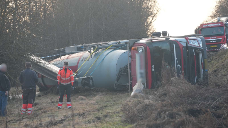 Voldsomme scener: Pløjer stort stykke græs op og styrter langt ned i grøften
