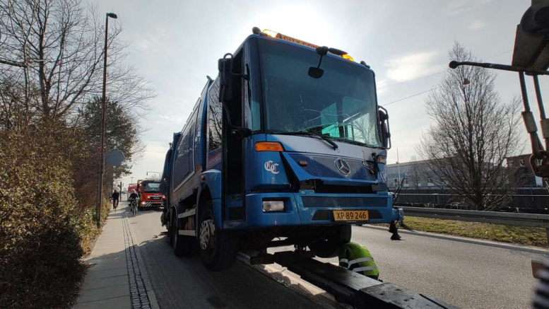 Skraldebil påkører civil patrulje under udrykning ved Circle K-tank