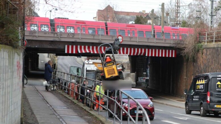 Arbejdskøretøj vælter og rammer bilist