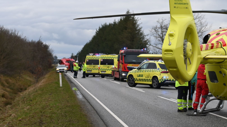 Landevej afspærret i begge retninger efter hårdt sammenstød