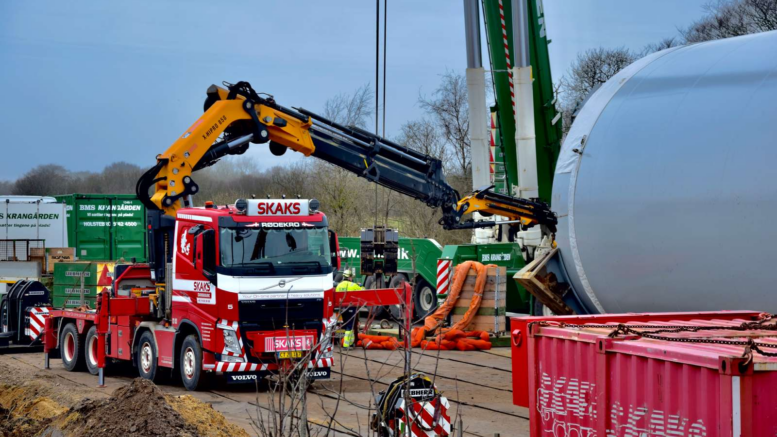 350 tons tung vindmølletårn bliver liggende ved motorvej