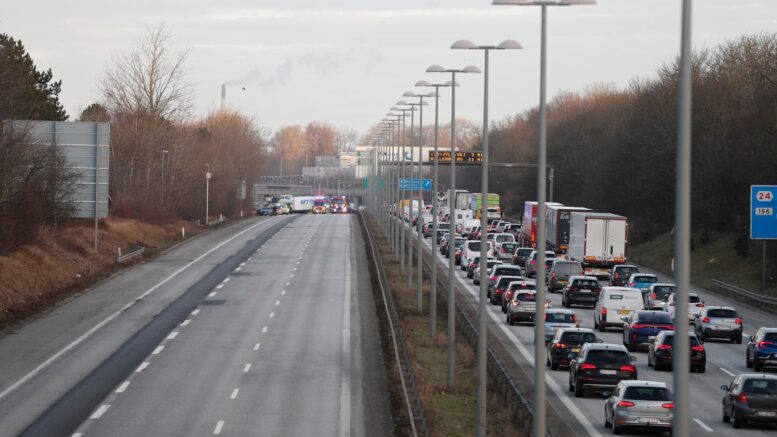 Motorvej afspærres efter uheld: Kiggekø i modsat side
