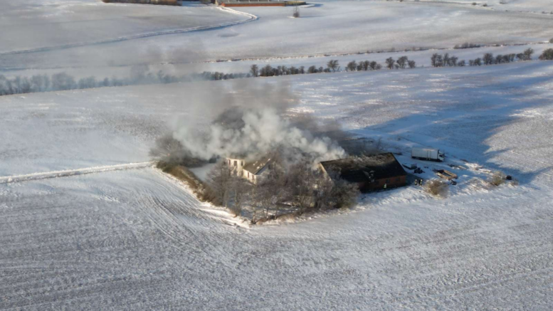 Kraftig røg udvikler sig fra gård i flammer