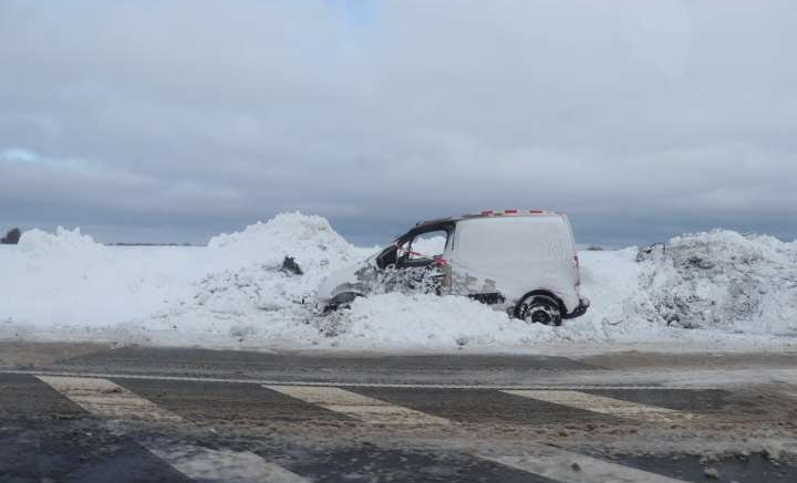 Bil udbrænder i kæmpe snebunke