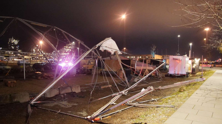 Street food-telt smadret i kraftig storm