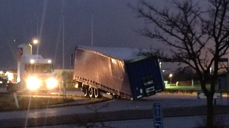 Falster: Tagsten vælter ned på vejen