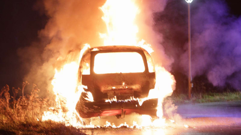Mand med benzindunk flygter fra brændende bil