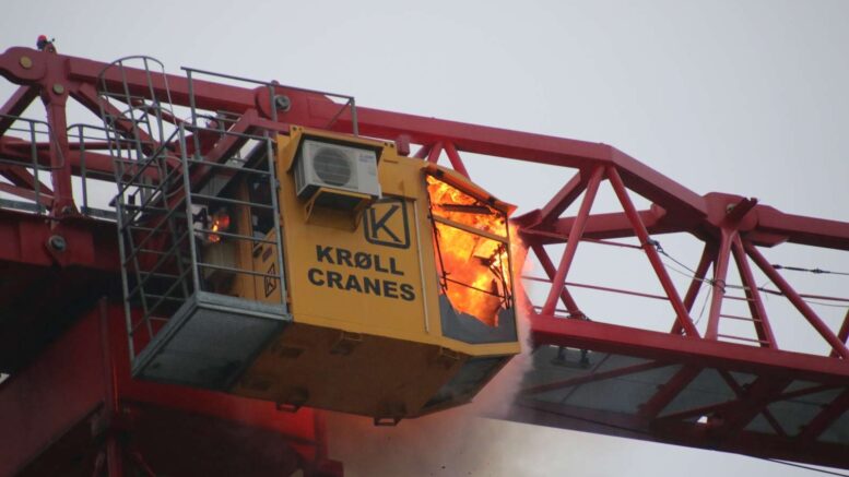 Brandvæsenet tilkaldt: 60 meter høj kran brænder