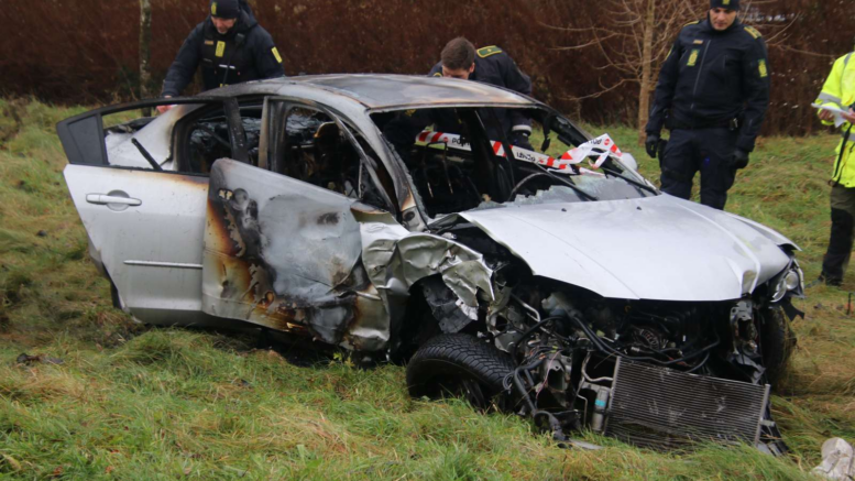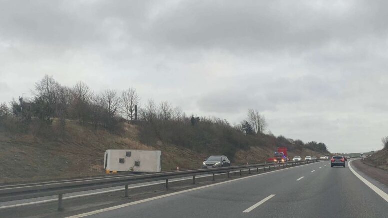 Campingvogn vælter på motorvejen