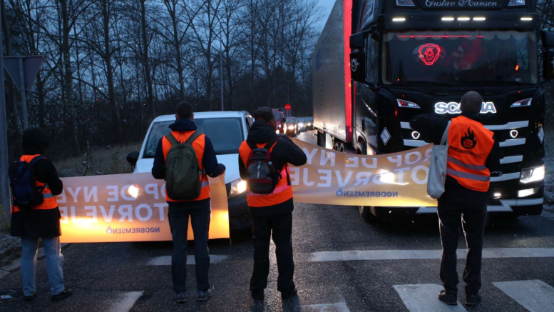 Aktivister afspærrer motorvejsafkørsel: Massiv kødannelse