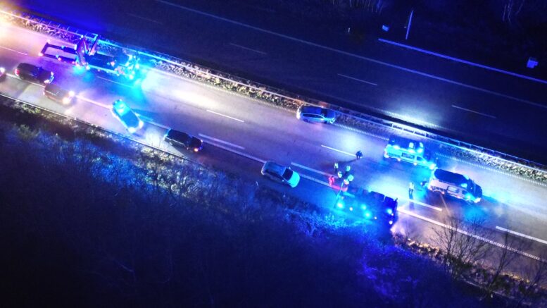 Motorvej fuldstændig afspærret efter færdselsuheld