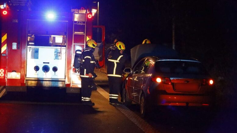 Fastklemt efter påkørsel af større dyr: Hamrer ind i vejtræ