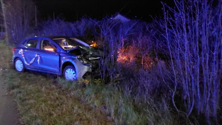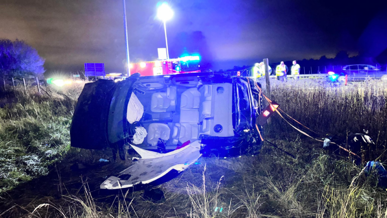 Afspærret motorvej: Bil hamrer ud i rabatten