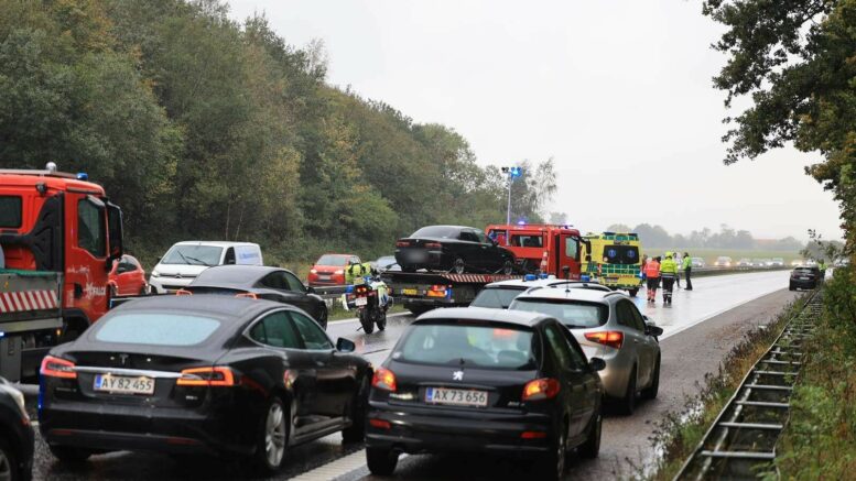 Motorvej spærret: Mere end 12 kilometer lang kø