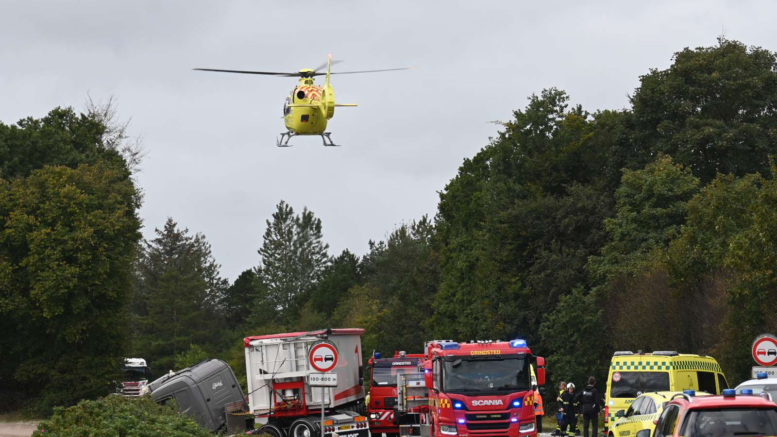 Lastbil og personbil i alvorligt frontalsammenstød: Person kæmper for sit liv
