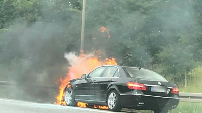 Massiv kø på motorvej efter bilbrand