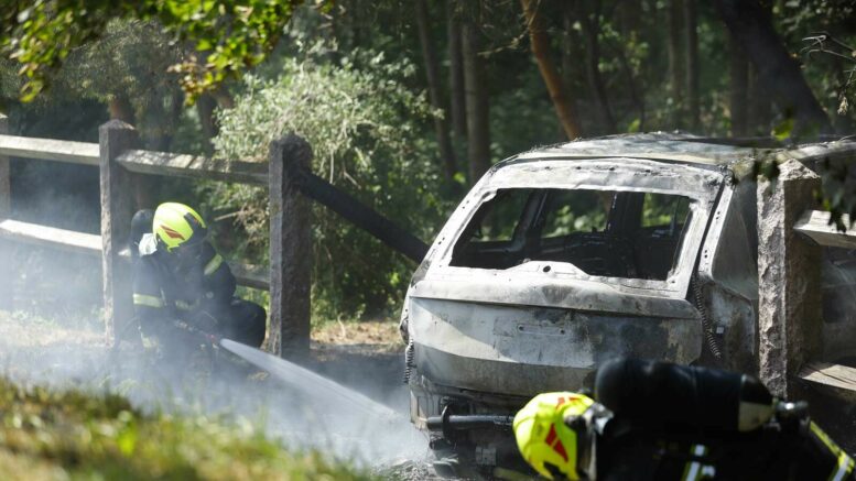 Bilbrand resulterede i uheld: Føreren måtte springe ud