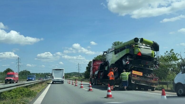 Lastbil med bred last er havareret: Skaber trafikale problemer på motorvej