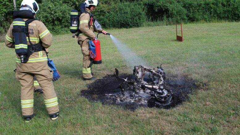 En båd brænder i en jysk havn