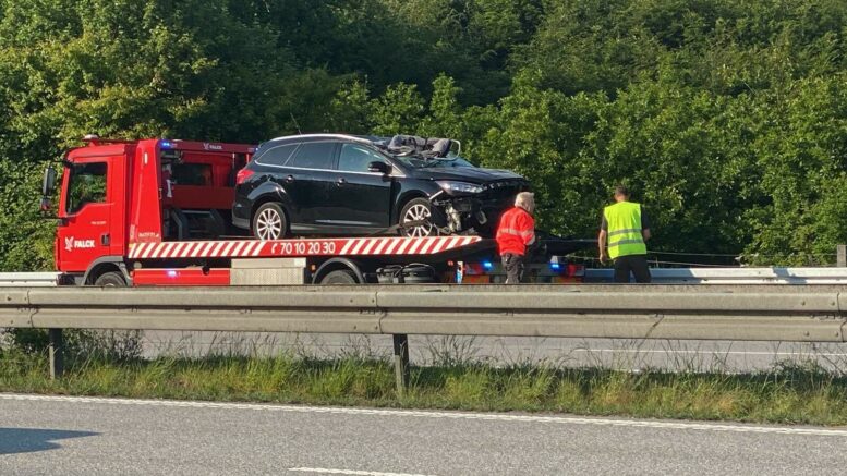 Voldsomt uheld: Familie i bil rammer hjul på motorvejen og ruller rundt